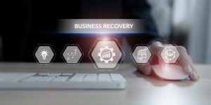 Business recovery plan and strategy concept. Business continuity tools, disaster recovery plan, insurance policy. Business strategies, managing staff, networking, develop innovation, seek assistance.