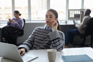 Woman Playing with Pencil in Office