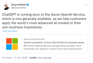 Microsoft kündigt milliardenschwere Investition in ChatGPT-Hersteller OpenAI an