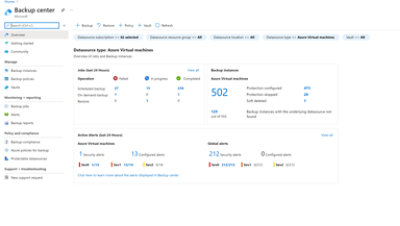 - Einfache Verwaltung: Die zentralisierte Verwaltungsschnittstelle ermöglicht es Ihnen, Backup- und Wiederherstellungsrichtlinien effizient über verschiedene Umgebungen hinweg zu definieren und zu verwalten, sei es in der Cloud oder on-premises. Dies umfasst Azure-VMs, SQL- und SAP-Datenbanken, lokale Windows-Server und VMware-Computer.